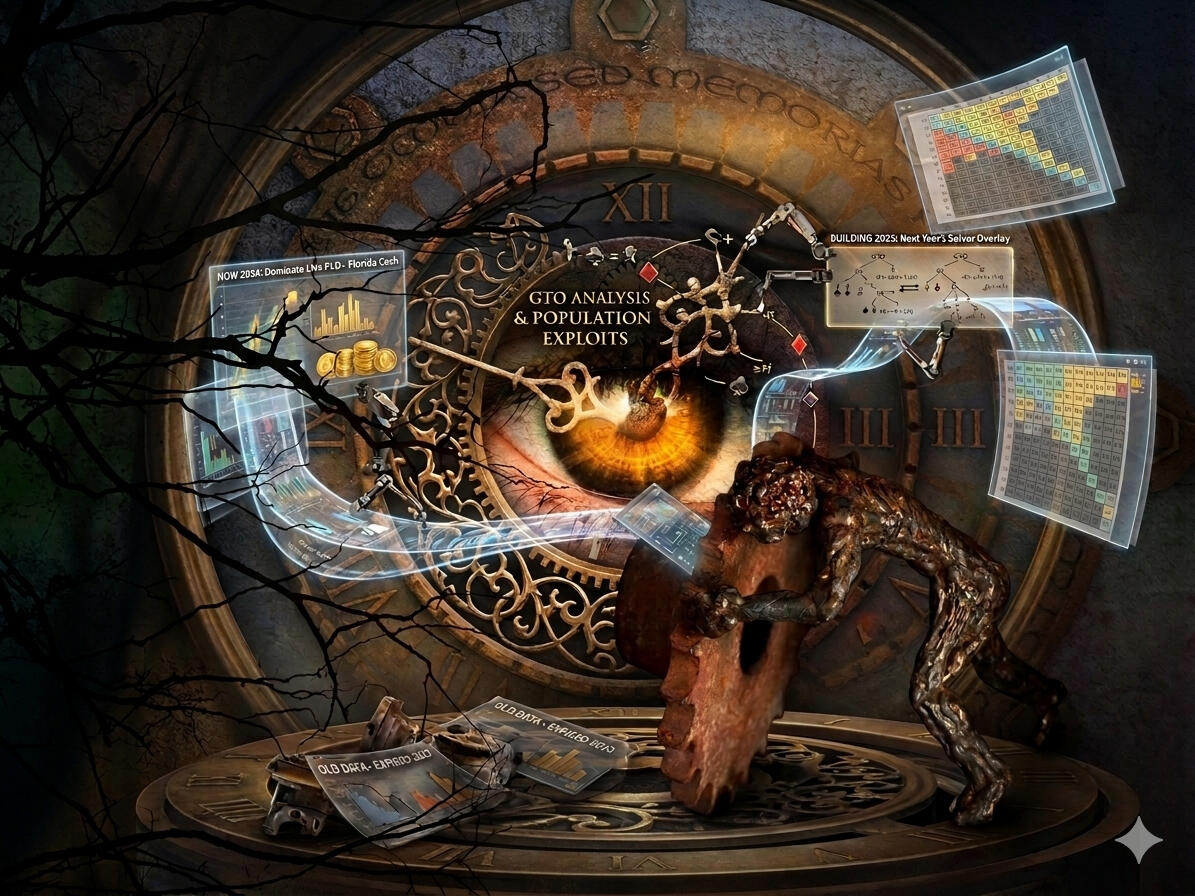 This isn’t a collection of casual observations gathered between other projects; this is the result of three years of absolute, laser-eyed immersion in a single pursuit: total PLO domination.While the rest of the world was diversifying or chasing the latest distraction, I was locked in the lab, stripping the game down to its mathematical studs. Every node, every frequency, and every multi-way trap was stress-tested against the most aggressive dynamics in the Miami and Orlando live-cash circuits.This period of intense, singular focus allowed me to engineer a script that doesn’t just guess—it dictates. When you look at the results of these 36 months, you aren't seeing a generalist’s hobby; you are seeing the surgical output of a Sovereign Architect who refused to blink until the game was solved.This isn't just "sim" data. I have extensive experience and the data to prove these strategies work in the high-pressure, high-variance live cash PLO streets of Miami and Orlando.I’ve taken the most complex 4-card theories and translated them into a winning framework that has consistently outperformed the live pool in some of the most competitive rooms. 1,000 Days of Undivided Labor in the PLO Lab and confirmed in the live-cash PLO streets of Florida.